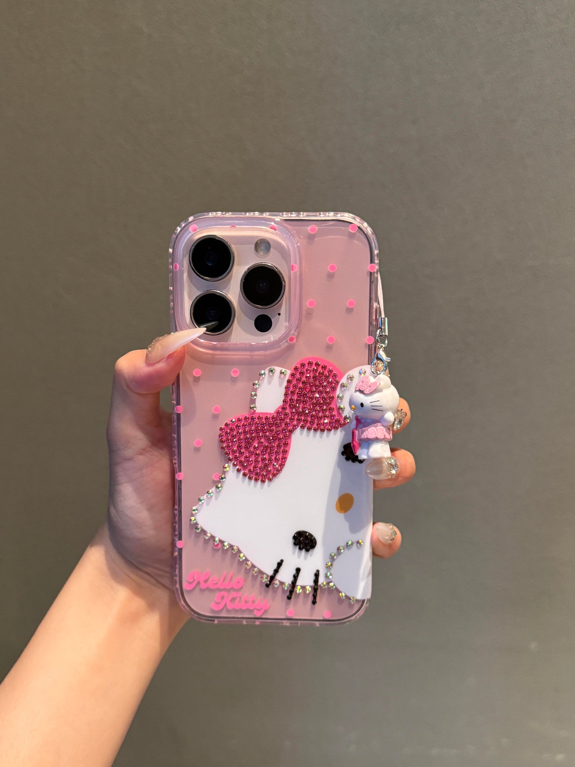Hellokitty Pink Polka Dot Bow Rhinestone Clear Cute Kawaii Phone Case #0521